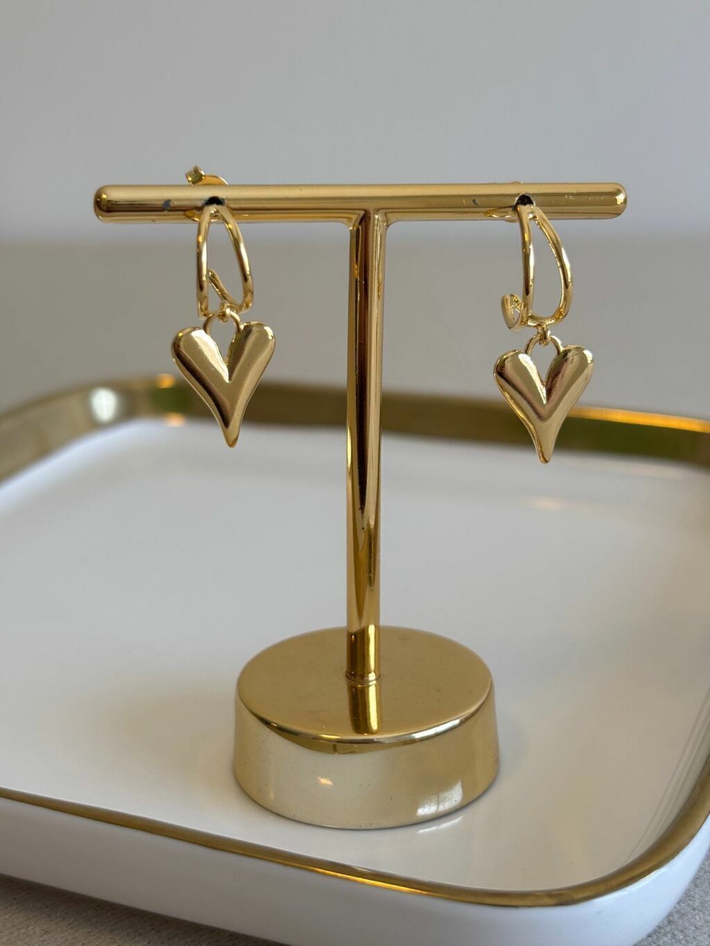 BRINCO ARGOLA 2 TIRAS CORAÇÃO PENDURADO -27610 BANHADO A OURO 18K