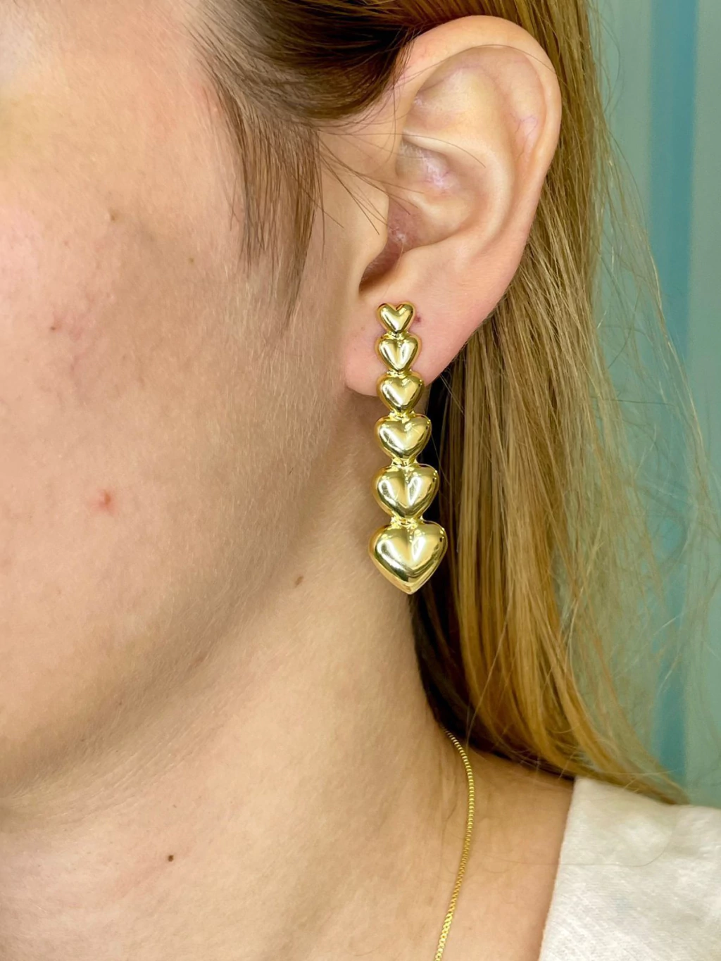 BRINCO CORAÇOES VERTICAIS 4,8 CM FOLHEADO - 27979: O Amor em Cada Detalhe!