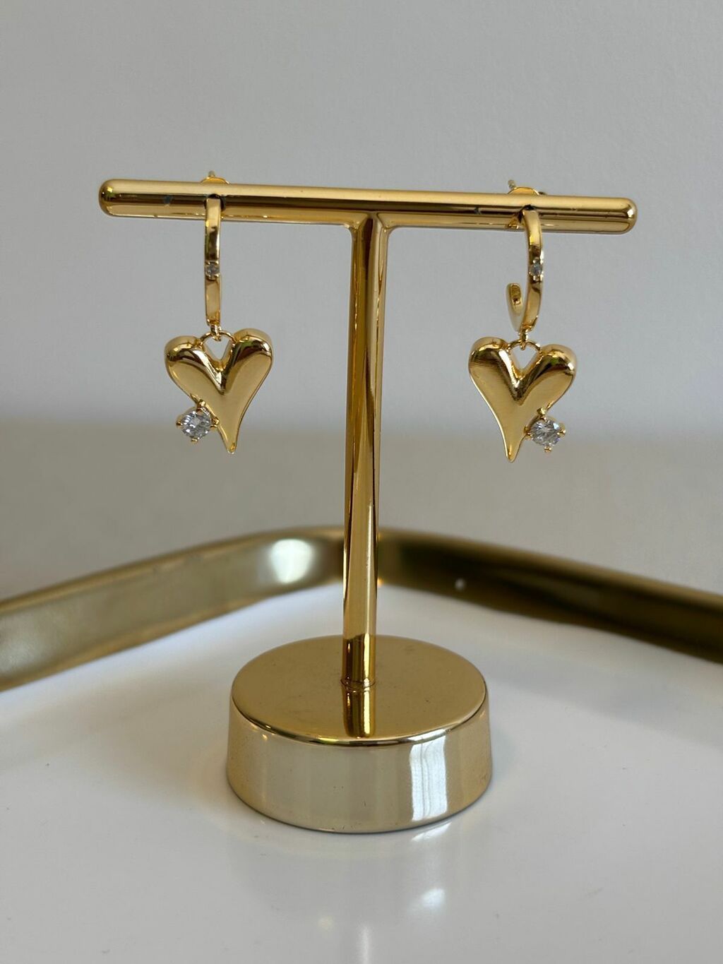 BRINCO MEIA ARGOLA C/ CORAÇÃO PONTO DE LUZ - 27612 BANHADO A OURO 18K