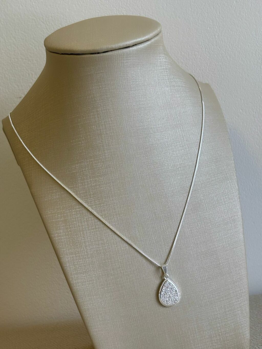Com seu design cravejado em forma de gota, este colar simboliza beleza e delicadeza. A sua estética refinada garante que você se destaque, seja em um evento especial ou no dia a dia, sempre com um toque de classe.